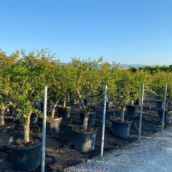 De dikke bladeren zijn witbont van kleur, wat deze Pittosporum een opvallende exotische plant maakt op uw terras.